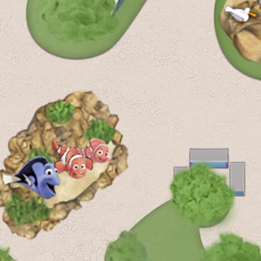 Board a “clamobile” and descend slowly below the waves, where Nemo’s friends flit through brightly colored coral reefs and gently swaying anemones. Dodge stinging jellyfish, underwater mines, a toothy anglerfish and an even toothier Bruce the shark.