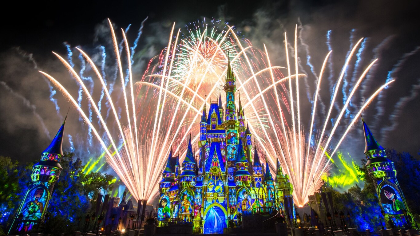 Minnie’s Wonderful Christmastime Fireworks Show Look to the sky for a dazzling fireworks show full of festive cheer.