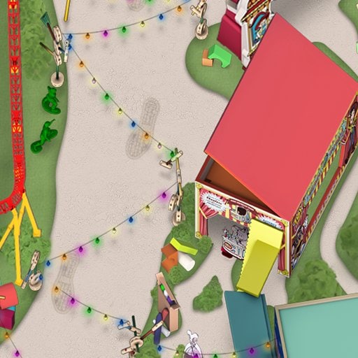Entre no quarto do Andy e vasculhe um baú de brinquedos repleto de jogos clássicos antes de retirar um par de óculos 3D especiais. Então, embarque em um bonde inspirado em parques antigos e use atiradores com mola para acertar a pontaria em diversos alvos móveis.