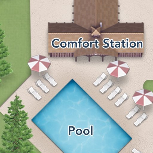 Venha dar um mergulho na Meadow Swimmin’ Pool! Junte-se a nós em atividades para toda a família todos os dias, como festas temáticas na piscina e outras atividades legais. As opções de diversão incluem jogos temáticos na piscina, revezamentos, competições de perguntas e muito mais! Consulte um recreador para maiores detalhes.
